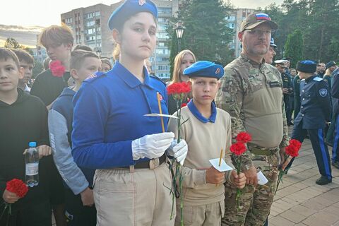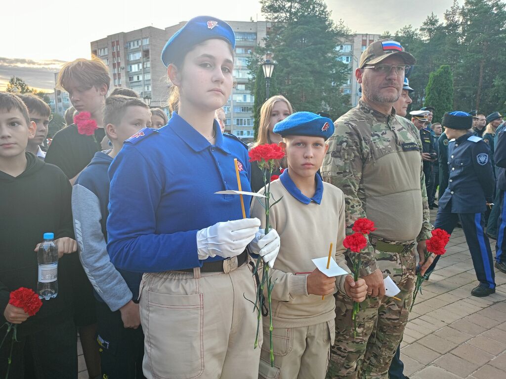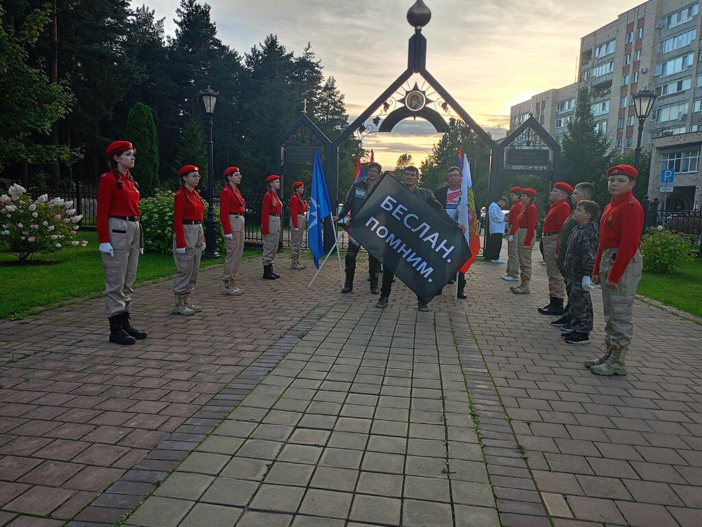 Юнармейцы отрядов "Дружина" и "Легион 47" МБОУ "СОШ № 6" г.Сосновый Бор и воспитанники казачьего кадетского класса им. Б. П. Крамарова приняли участие в церковно-общественной акция "Беслан. Помним" памяти жертв Беслана.