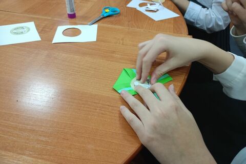 А затем ребята поучаствовали в областной акции "Цветок Жизни", сделав на память символы блокадного Ленинграда - зелено-оливковую ленточку и изображение памятника "Цветок жизни".