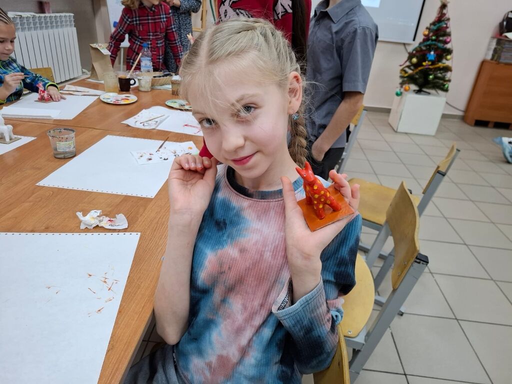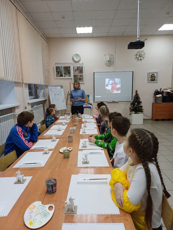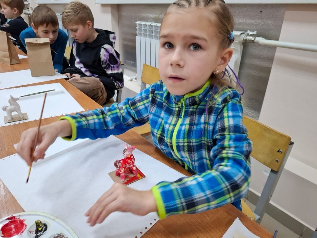 На мастер-классе по росписи гипсовых лошадок Ирина Николаевна рассказала, как из обычного гипса можно создать чудесную игрушку. Дети с увлечением участвовали в процессе, вкладывали частичку себя в каждую поделку, делая их особенными .