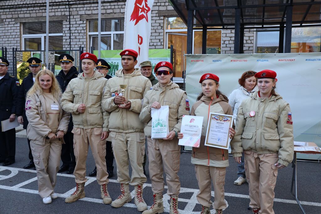 1 место занял юнармейский отряд "Рассвет", Киришская школа №6, г. Кириши, руководитель: Шишаев Александр Сергеевич